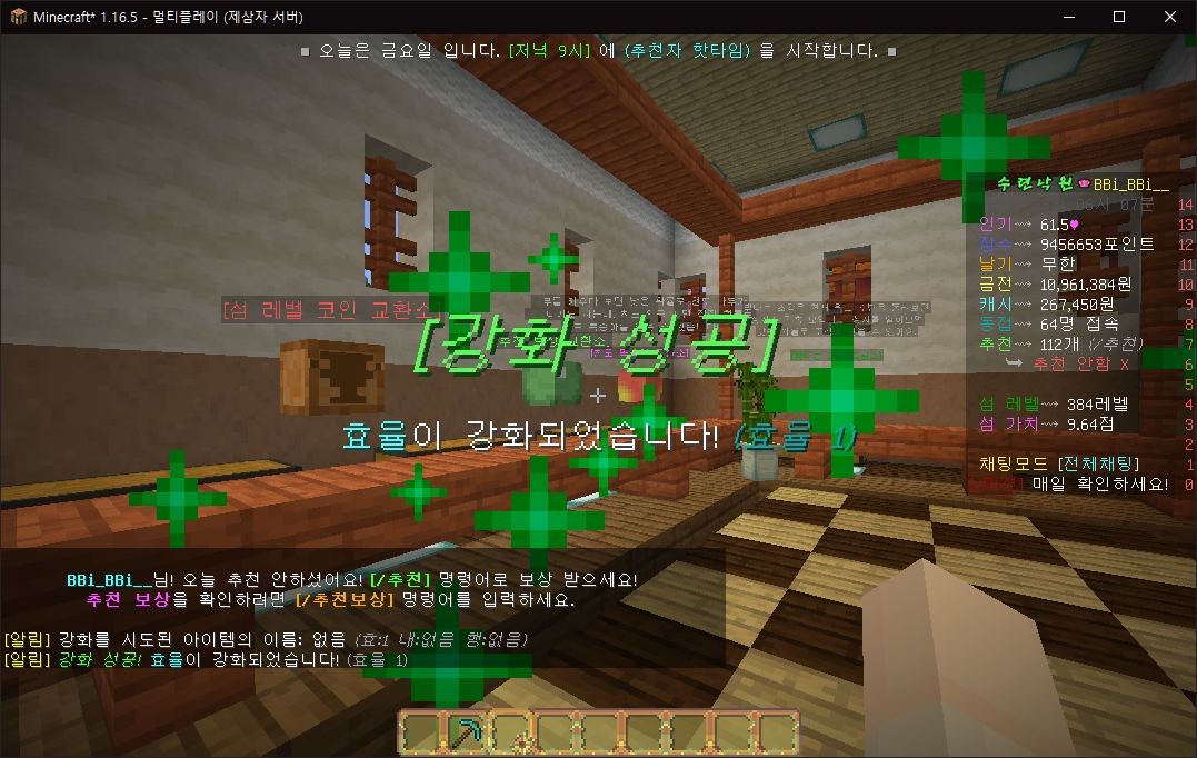 이렇게 클릭하면 들고있던 강화 망치가 사라지고, 도구가 강화됩니다.